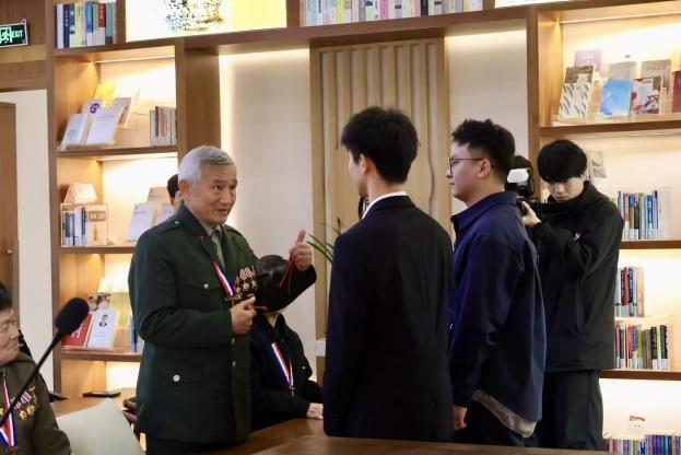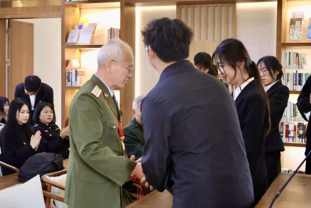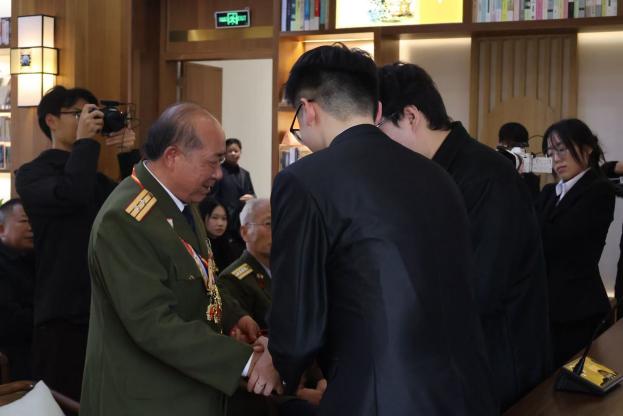 薪火永相传,结对共成长。在亭林书院,老党员、战斗英雄、劳动模范与青年师生一对一结对,搭建精神传承、经验传授、责任传递的育人桥梁。上海百老德育讲师团团长张妙德回顾党从1921年一大至今的发展历程,讲述红船启航与建党精神,并寄语青年“在新时代新征程上坚守初心、勇担使命”。金山卫市场监督管理所党支部党员代表张翔鸣结合岗位实践分享体会,勉励青年将个人理想融入国家发展大局。